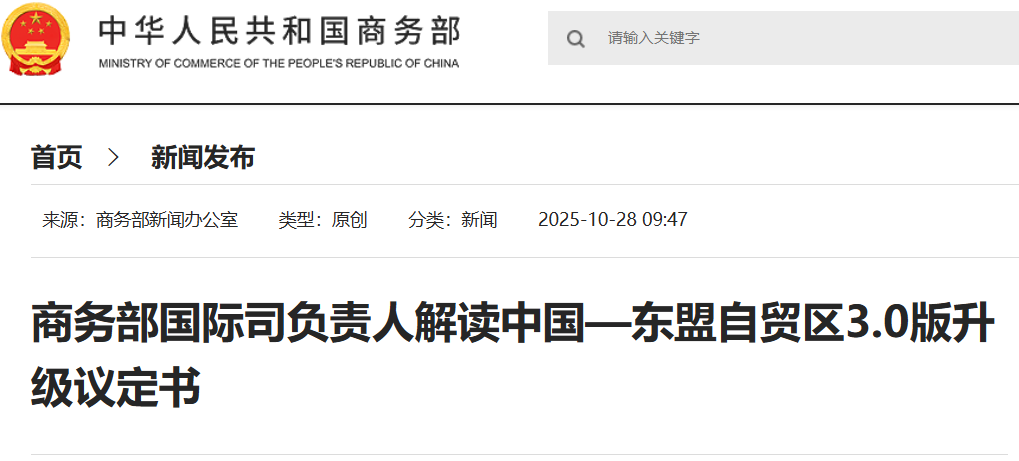 - 10-292025 商務部:中國與東盟首次對綠色經濟、新能源、清潔能源、可持續(xù)金融、綠色技能等作出明確定義